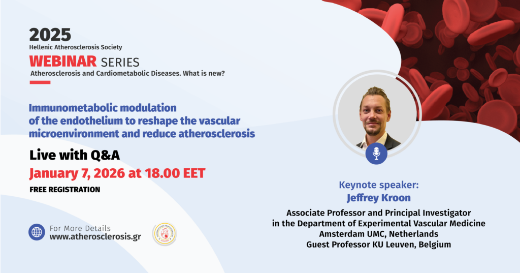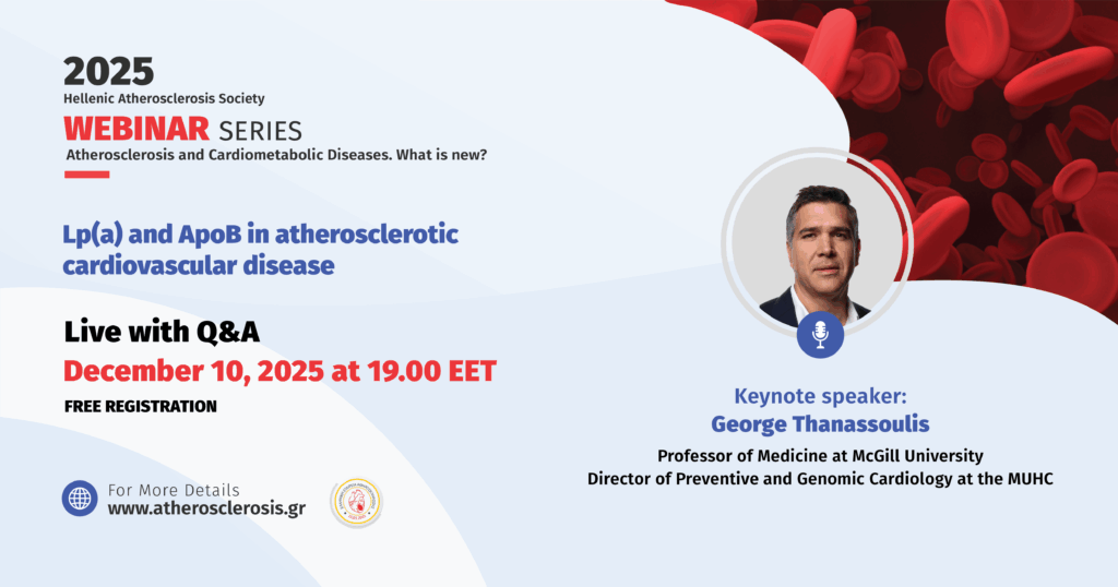 The Hellenic Atherosclerosis Society is pleased to announce the continuation of its webinar series for the 2025–2026 academic year. This initiative brings together leading experts from around the world to share the latest knowledge and perspectives on atherosclerosis and cardiometabolic diseases.